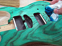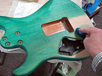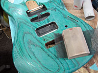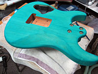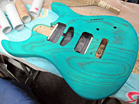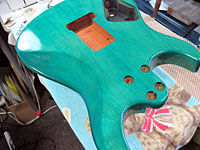 青系色のギターを作ったことがないんで、一度はやってみたかった。 |